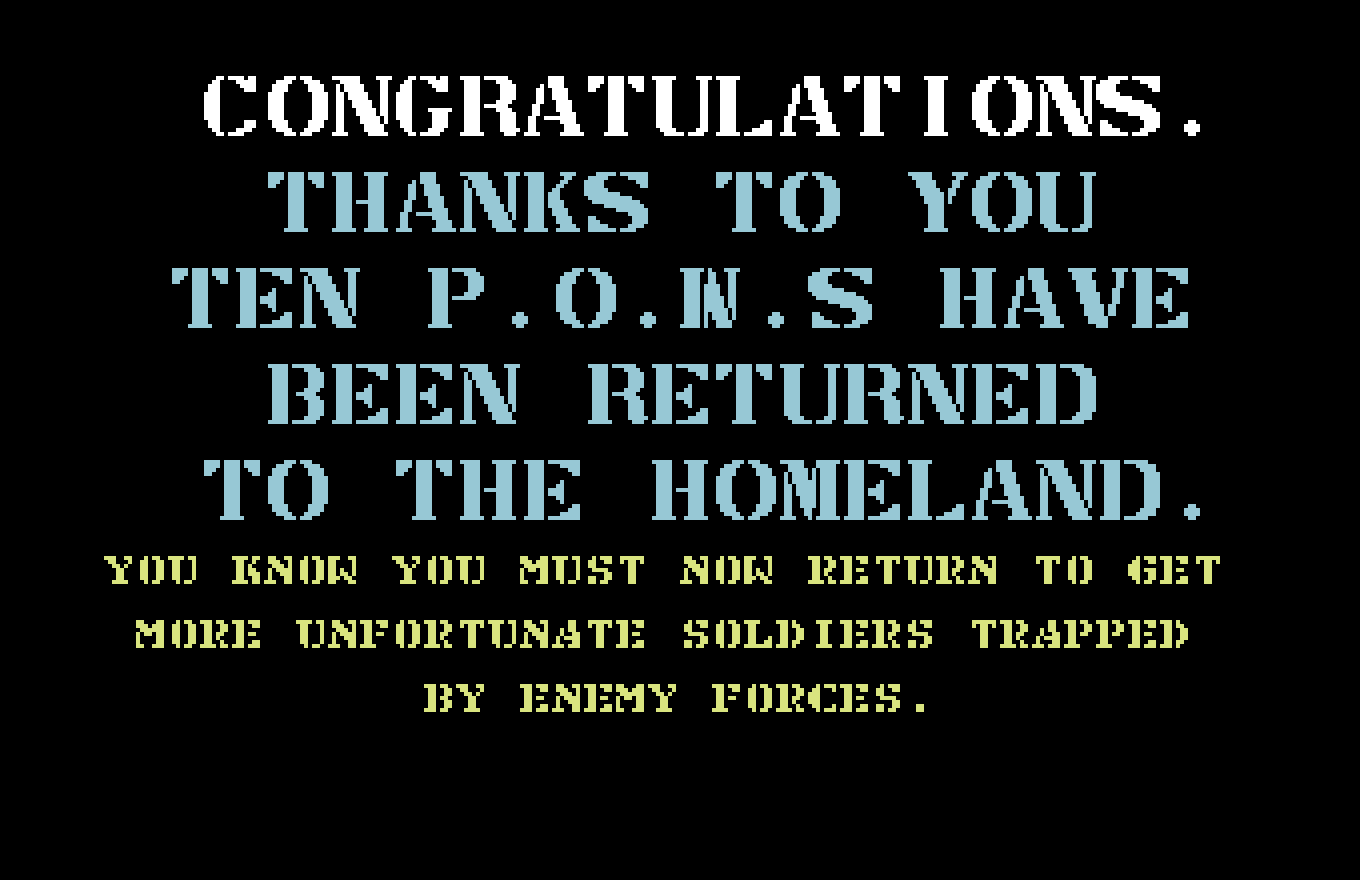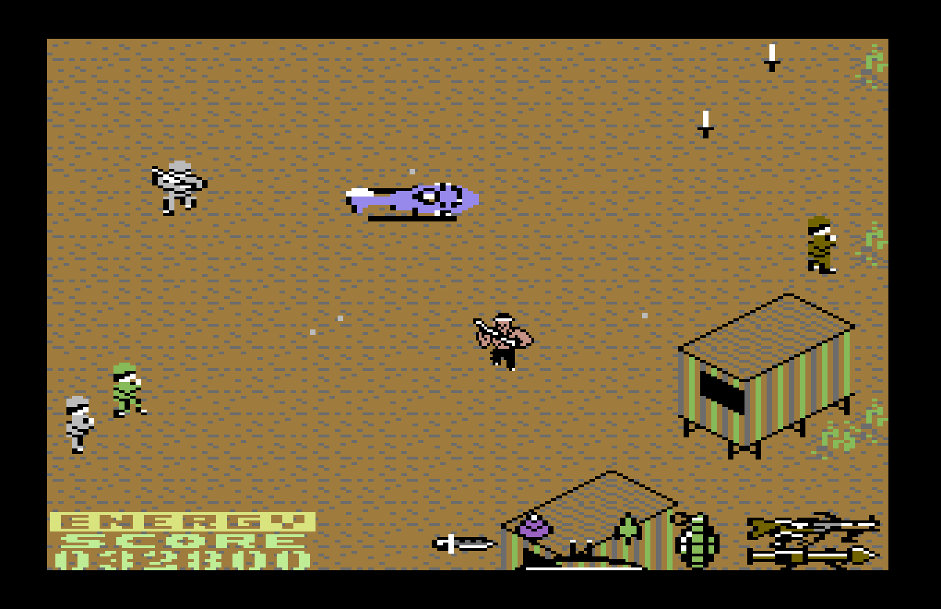 Hier kun je zien hoe je “Rambo: First Blood Part II” voor de Commodore 64 helemaal kunt uitspelen. Op deze foto’s zie je precies naar welke gebieden je moet lopen en in welke richting. Ook kun je zien waar je alle items en tegenstanders kunt vinden. Het spel bestaat uit één level. Heb je het uitgespeeld, dan begint het weer opnieuw. Je puntentelling loopt gewoon door, zodat je kunt proberen een nieuwe highscore te behalen.