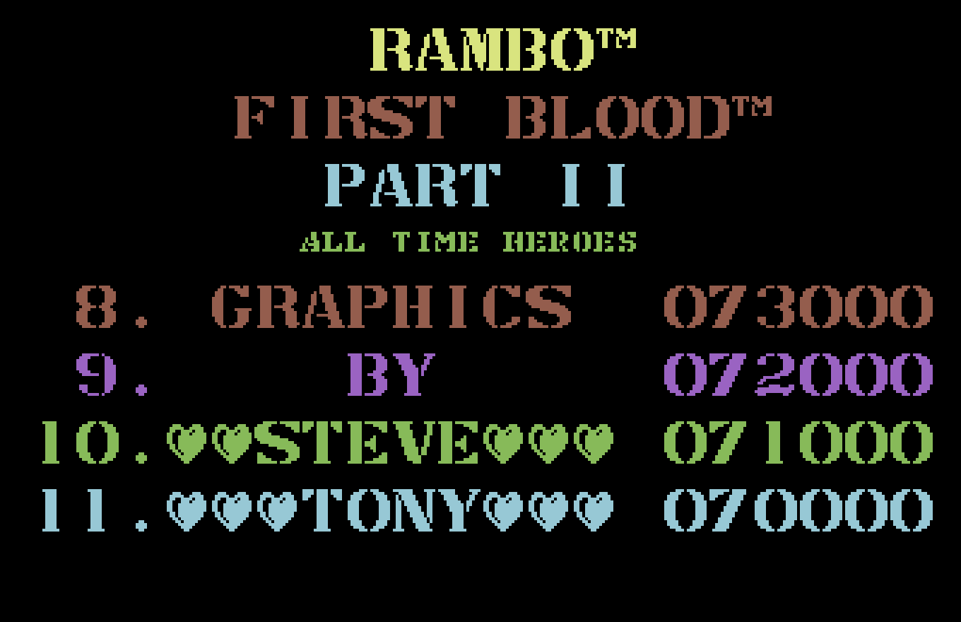 First Blood Part II” (Rambo) is een klassiek videospel dat in 1986 werd uitgebracht voor de Commodore 64-computer door Ocean Software. Dit spel, gebaseerd op de gelijknamige film met Sylvester Stallone, plaatst spelers in de rol van John Rambo. Het doel is om verschillende missies te voltooien in een uitdagende jungleomgeving, vergelijkbaar met de spannende gebeurtenissen uit de film.